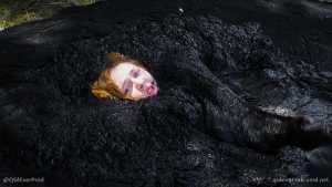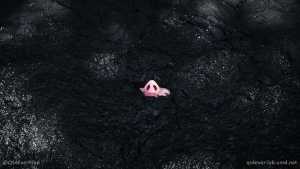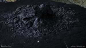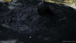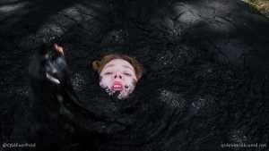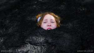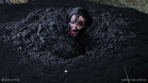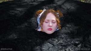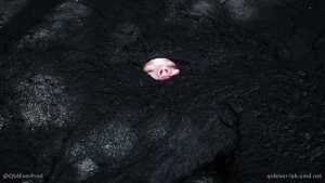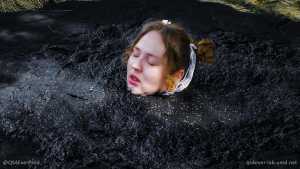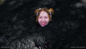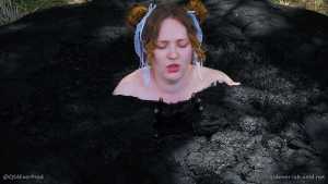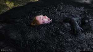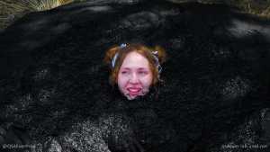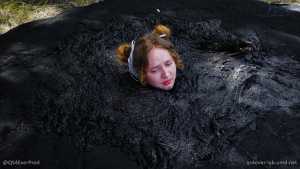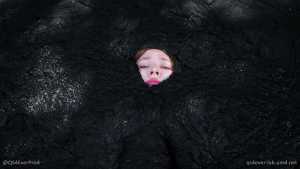 A new iteration of our famous Black Tar. Thicker, stickier, and with a hard crust. This time, Tiny is testing our new tar pit. As you all expect, she'll be completely immersed in this substance.