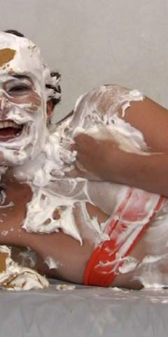 MessyMegan was surprised by theoldmanandthepie with a big sloppy cream pie to the face