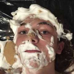 Slaps was surprised by Seangunge with a big sloppy cream pie to the face